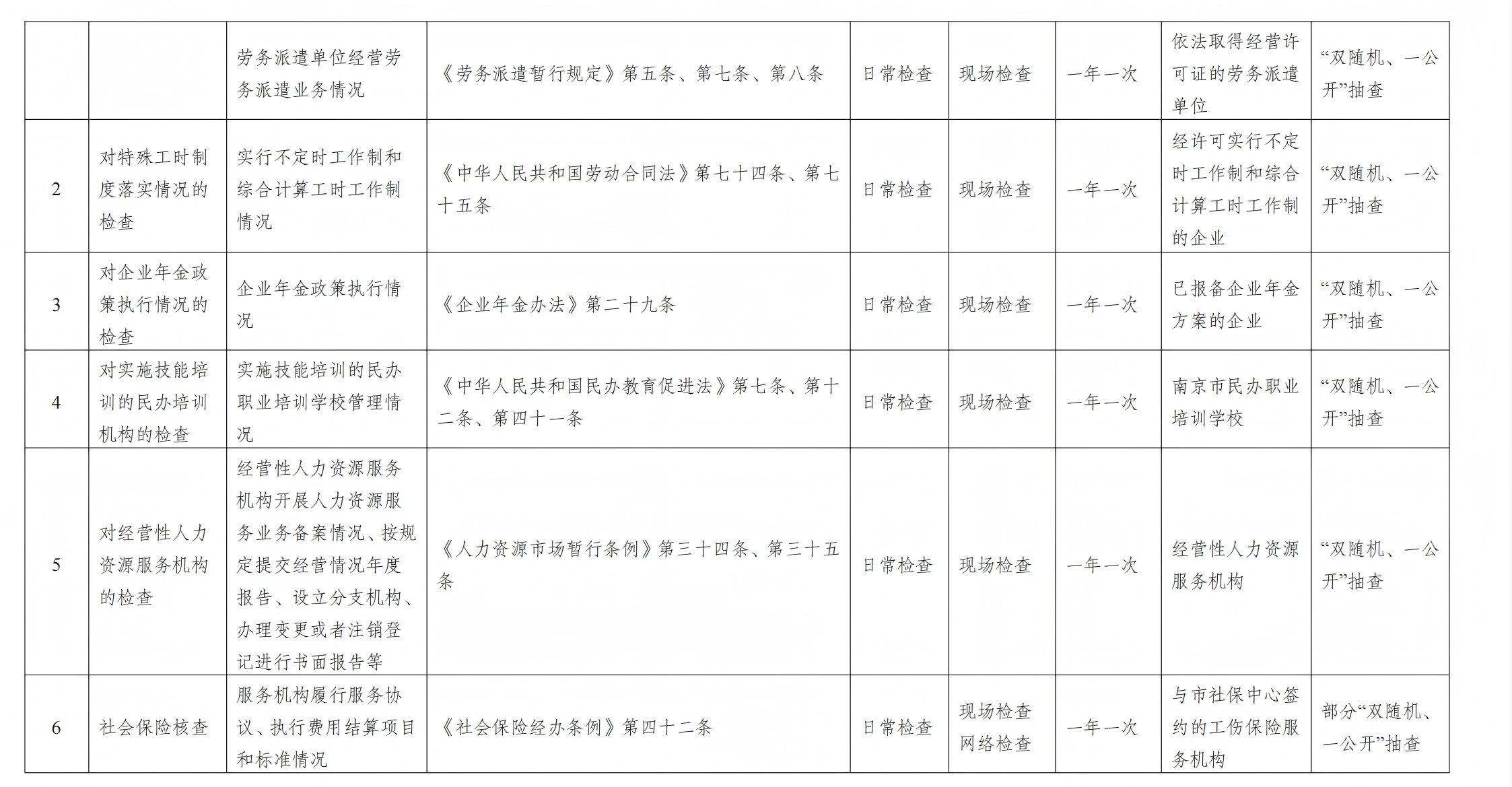南京市人力资源和社会保障局2025 年度涉企行政检查计划