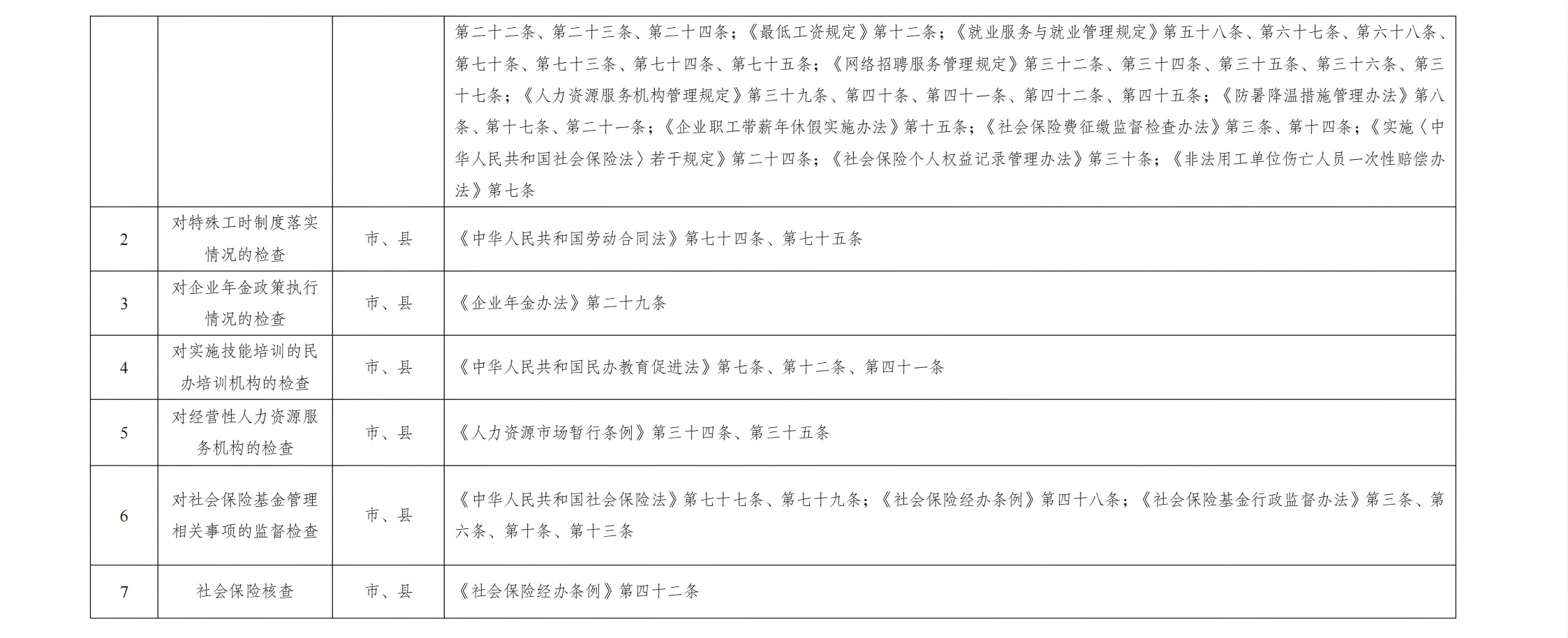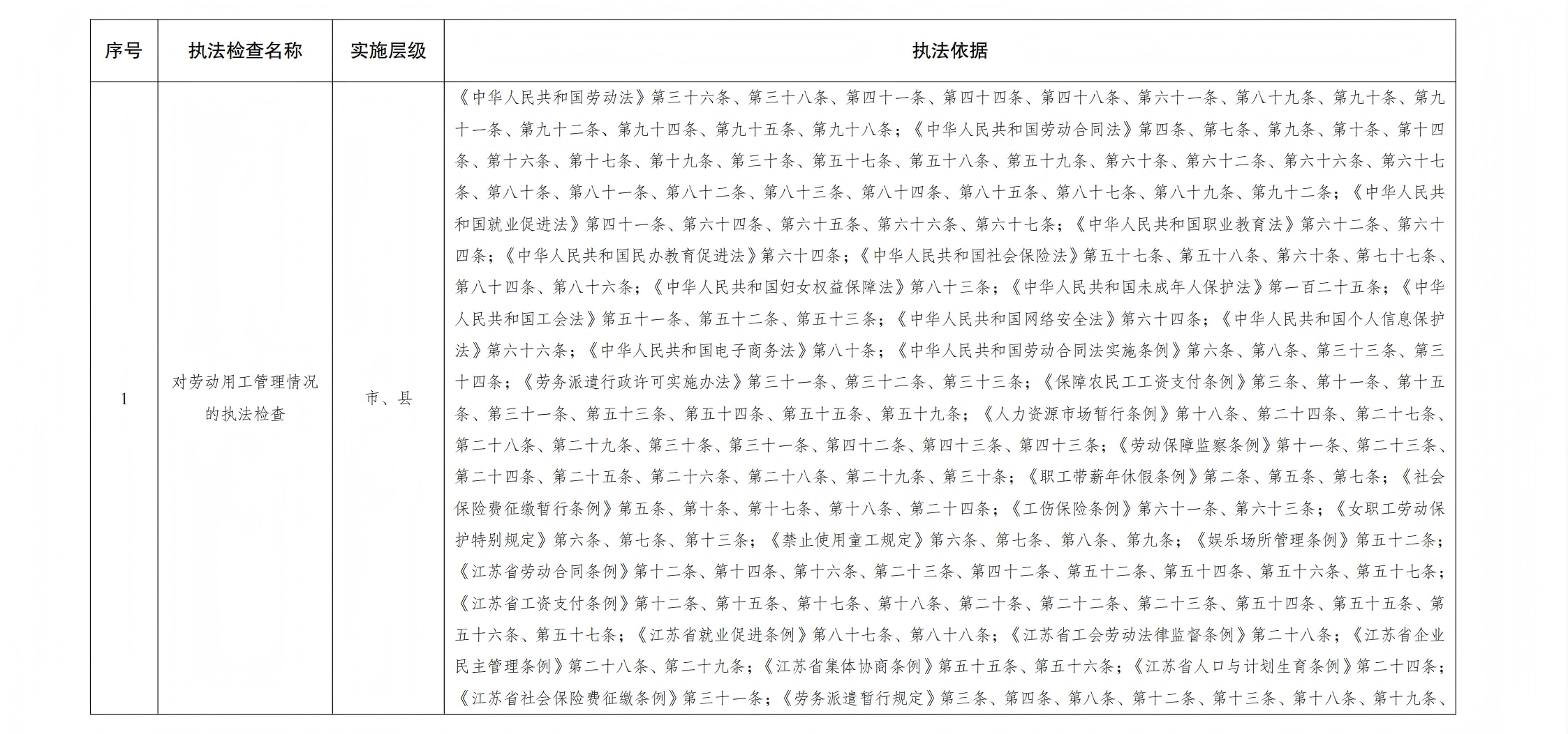南京市人力资源和社会保障局涉企行政检查事项及依据