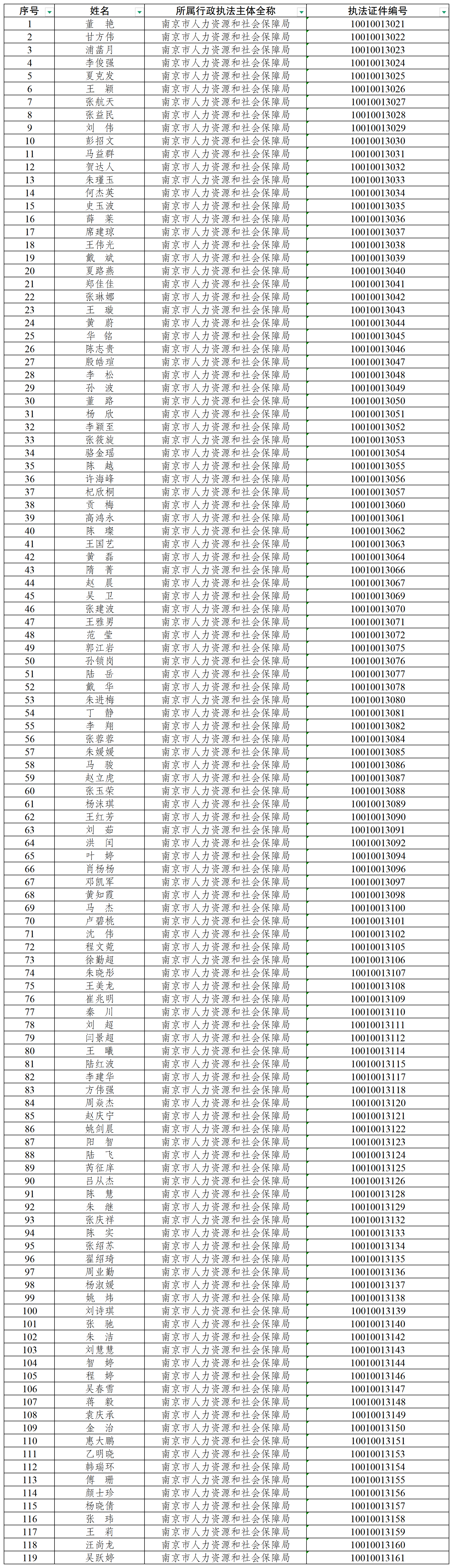 2026年南京市人力资源和社会保障局行政执法人员信息表