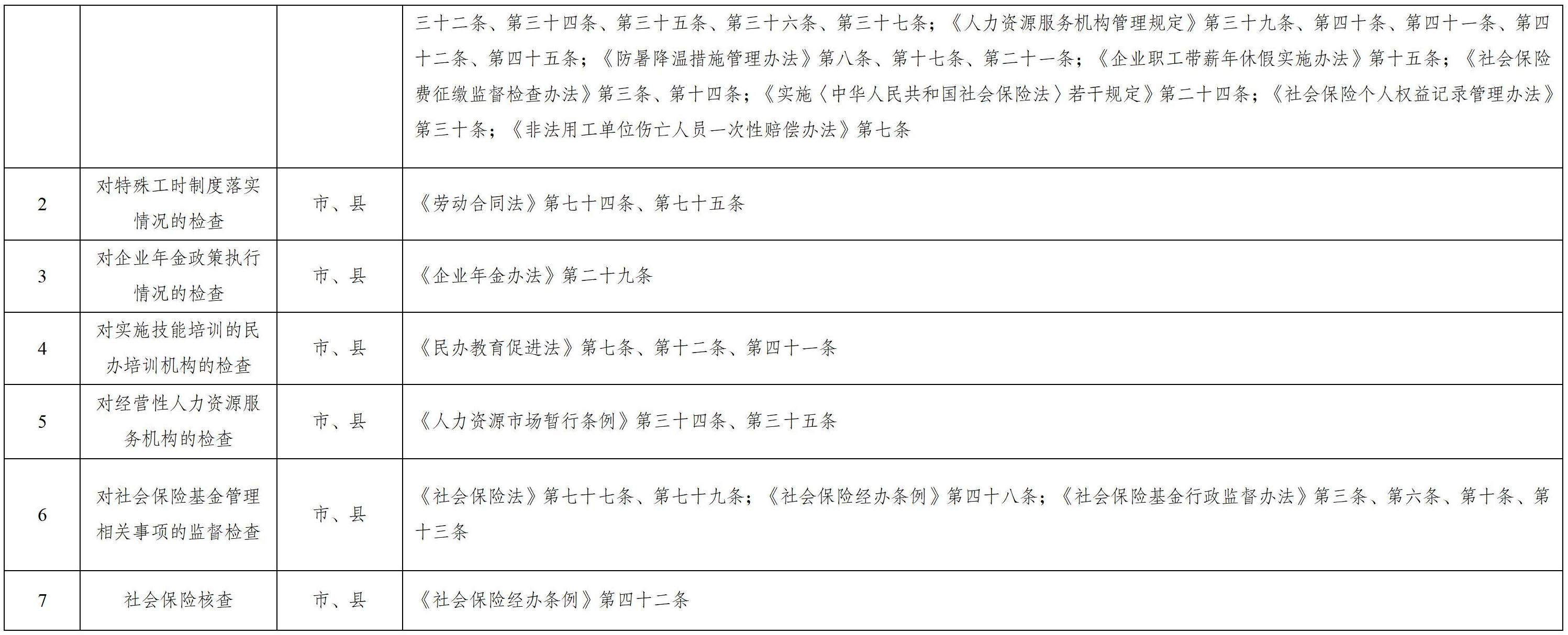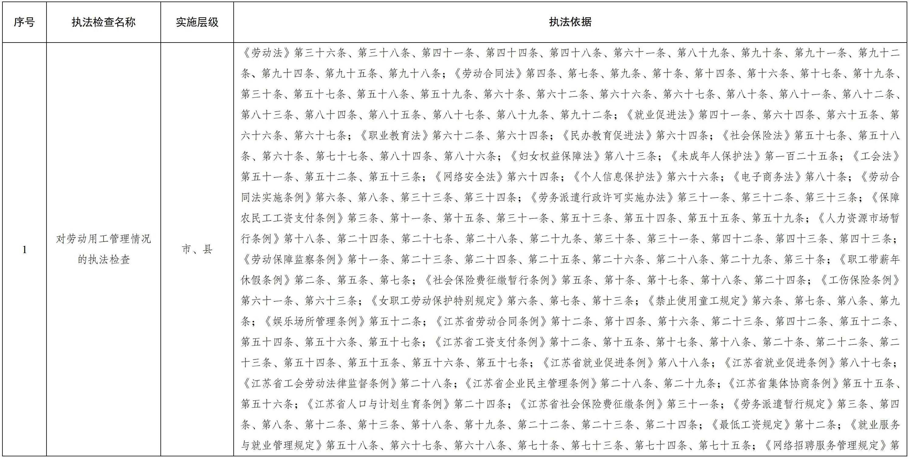 南京市人力资源和社会保障局涉企行政检查事项及依据