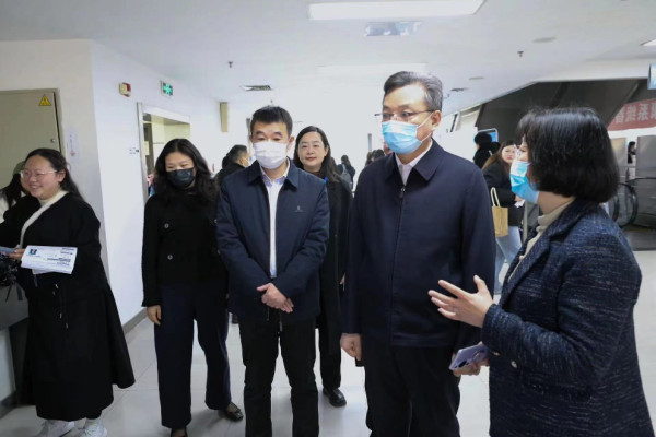 省人社厅副厅长封春晴、省人才流动服务中心主任李晓军及省卫健委人才服务中心副主任顾曼丽等领导巡视招聘会现场。