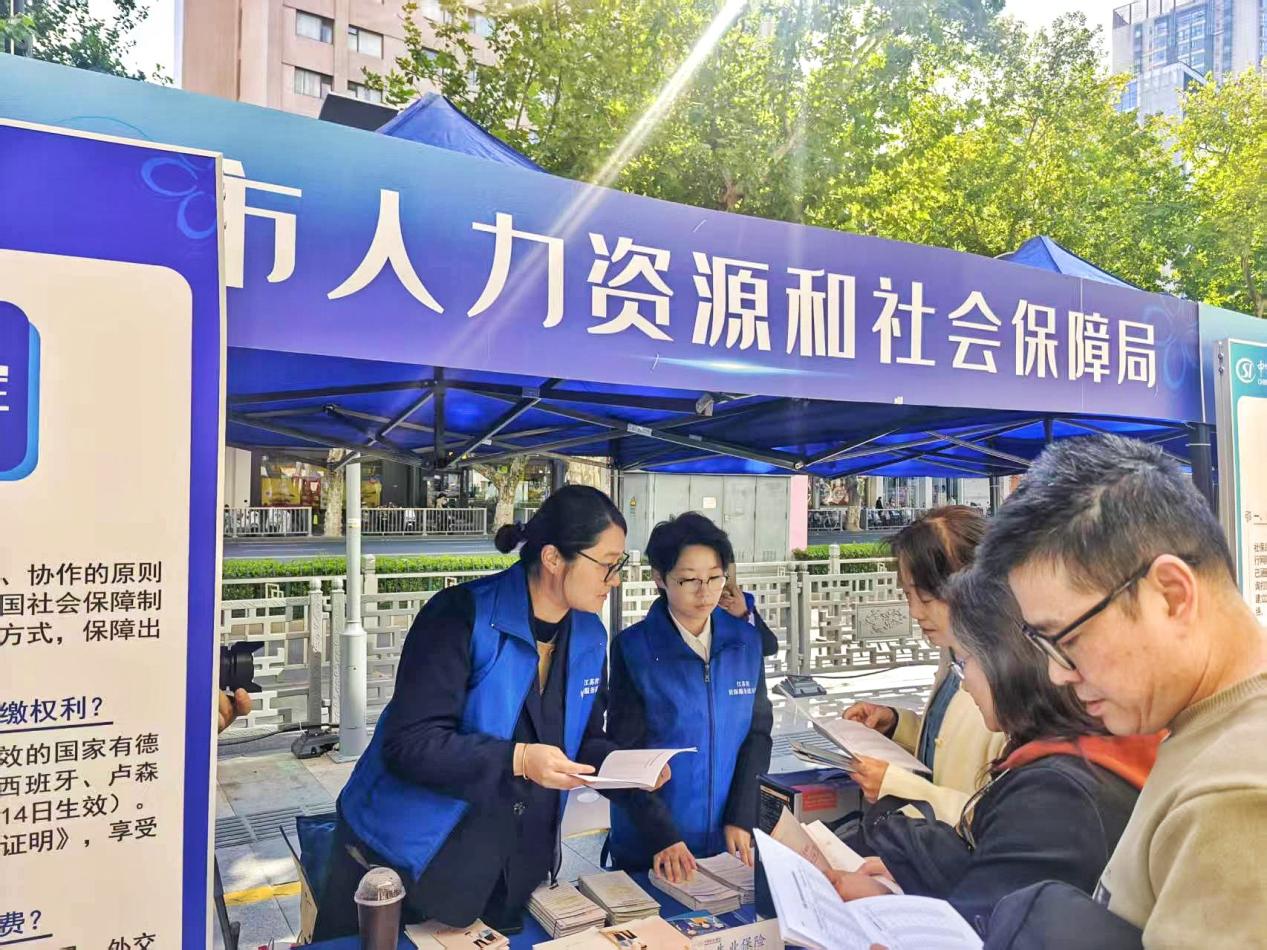 10月23日下午,以“高质量参保 智慧化服务”为主题的“社保服务进万家”活动在珠江路金鹰壹号广场举行。本次活动由省人社厅主办,市人社局、市社保中心联合中国银行、农业银行、工商银行等9家金融机构承办,将社保服务直接送到群众身边。