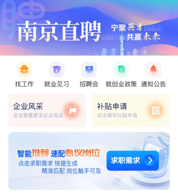 为有效提升人才“留宁率”,今年8月下旬,市人才服务中心依托“就在江苏”智慧就业服务平台上线“南京直聘”专区,并在中心微信服务号“求职招聘”栏目同步开通入口。专区重点面向高校毕业生和成熟人才,整合千余家企业的优质岗位资源,形成了“智能匹配岗位、自助查询职位、招聘会一区全览”的模式,多维度满足求职者招聘需求。此外,专区还集成就业见习申请、补贴申领、就创业政策查询等高频服务事项,进一步延伸引才服务的覆盖范围。运行两个多月以来,“南京直聘”专区共发布岗位3万余个,累计浏览1.4万人次。数字“虹桥”飞架,平台深植南京产业沃土聚势赋能,让才企相约云端、精准牵手。