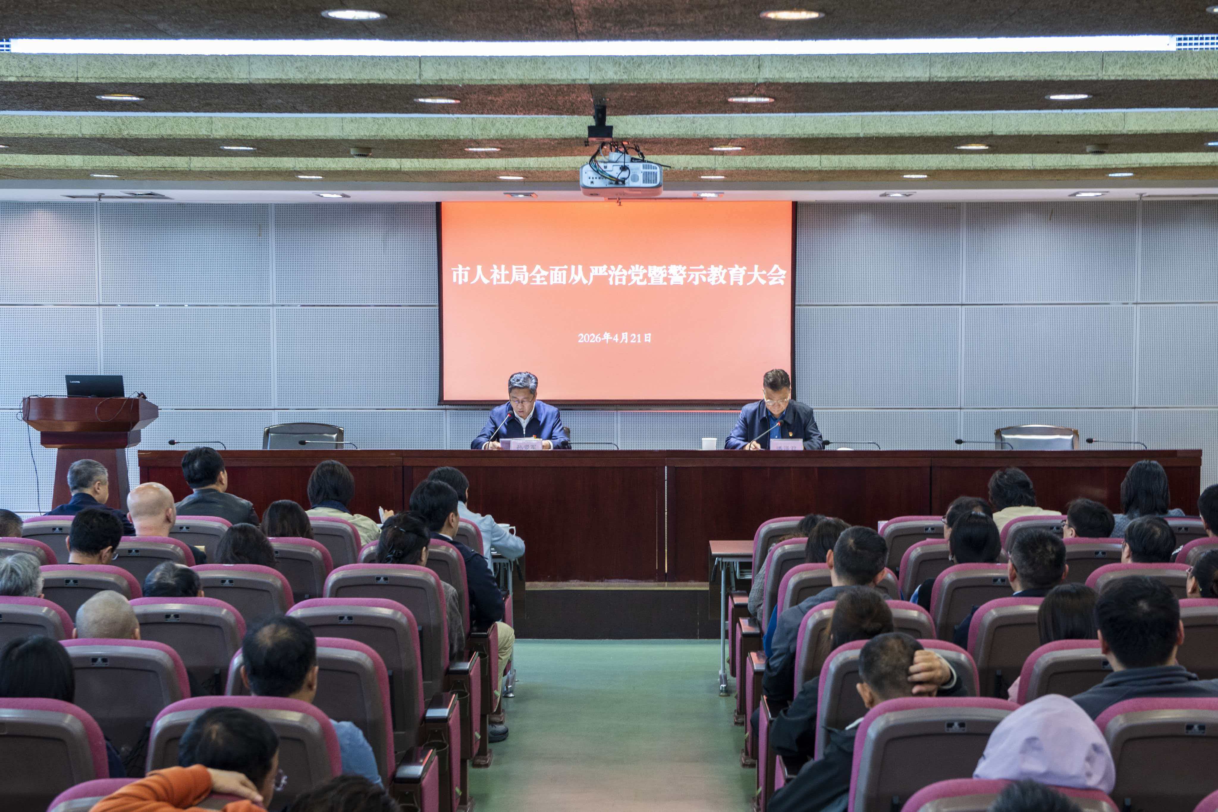 4月21日,市人社局召开全面从严治党暨警示教育大会,深入学习贯彻习近平新时代中国特色社会主义思想,全面落实二十届中央纪委五次全会、十四届省纪委六次全会、十五届市纪委六次全会精神,以警示教育敲警钟、明底线,以工作部署强责任、抓落实,持续推动全面从严治党向纵深发展,为人社事业高质量发展提供坚强纪律保障。局领导班子成员、处级以上干部、派驻纪检监察组相关负责同志及部分重点岗位、新提拔科级干部参会,局党组书记、局长孙爱军主持会议并讲话。